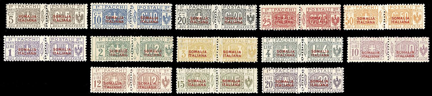PACCHI POSTALI - Soprastampati in rosso, III tipo, serie completa (30/42), gomma originale integra, perfetti. Molto freschi. Cert. Raybaudi ... Leggi tutto