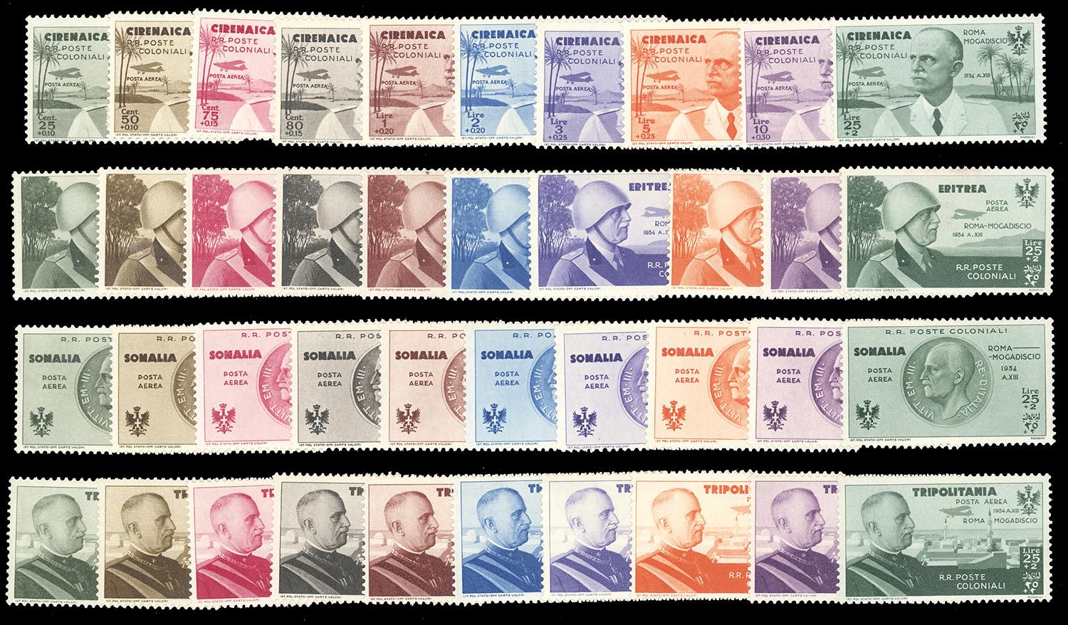 POSTA AEREA 1934 - Volo Roma-Mogadiscio, giro delle quattro Colonie, serie complete, nuovi, gomma originale, integra per molti esemplari (non calcolati), perfetti.