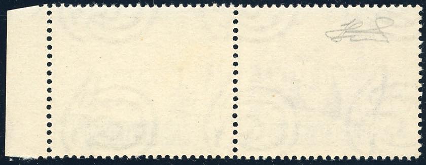 1949 - 35 lire Paesaggi, coppia orizzontale, il secondo esemplare senza la stampa del centro (352l), gomma originale integra, perfetta. Molto rara. Cert. Ferrario.