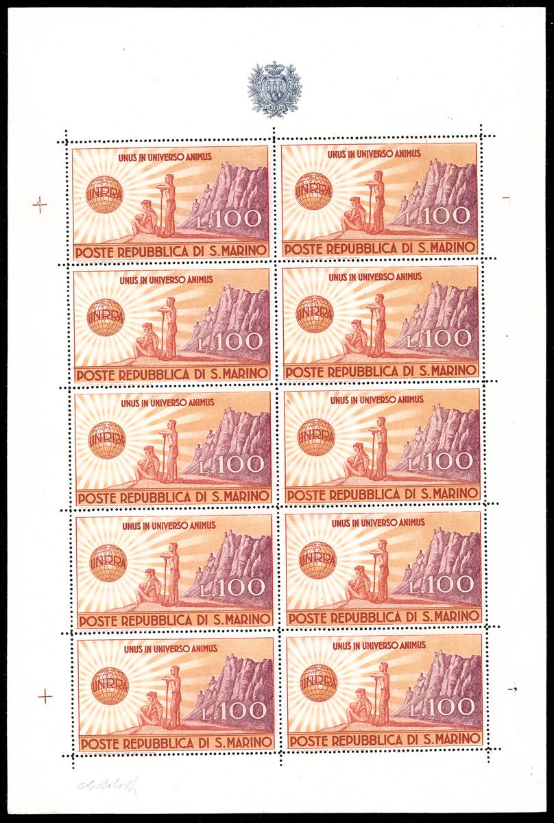 Lotto 2711 - 1946 - 100 lire UNRRA, minifoglio (6), nuovo, gomma ...