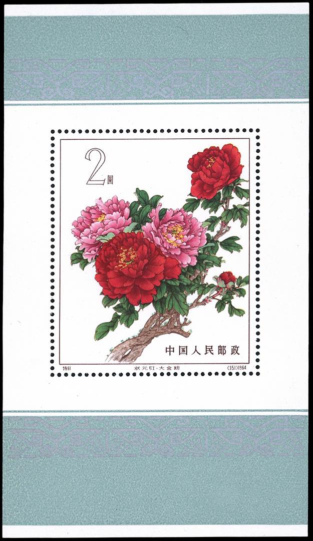1964 - Peonies souvenir sheet (Mi.B9), appropriate sizes, no gum as issued, beautiful quality, NH.