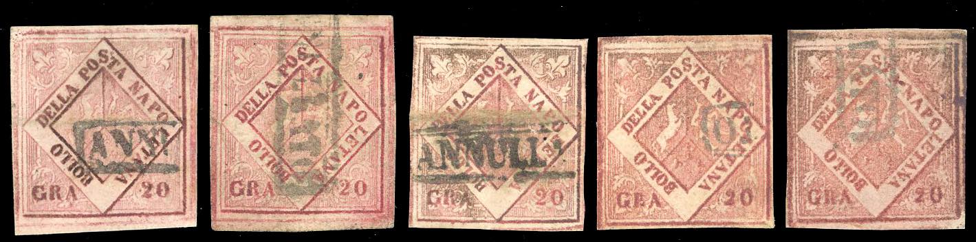 Lotto 2921 - NAPOLI FALSI PER POSTA 1859/60 - Cinque esemplari usati del ...