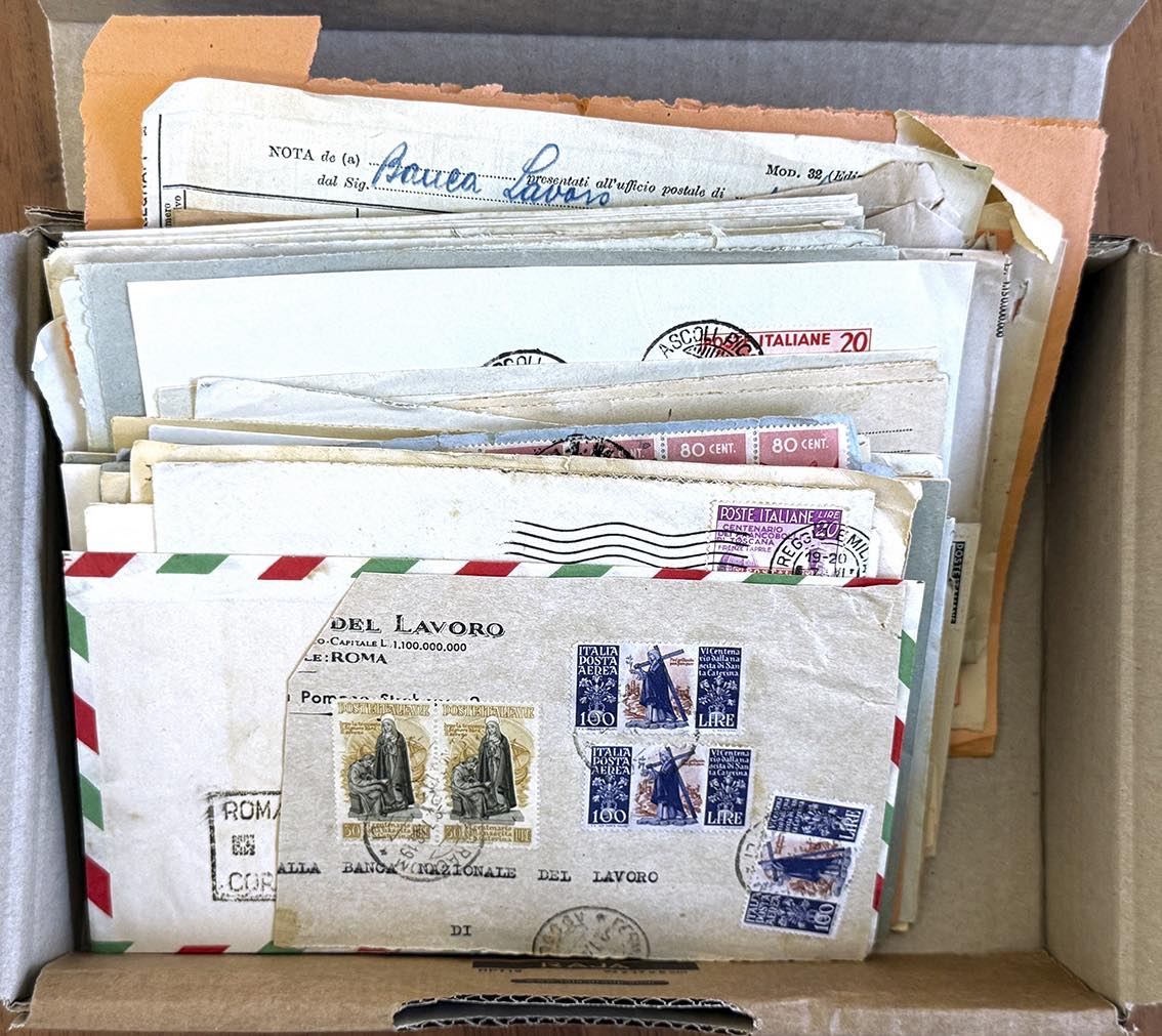 REPUBBLICA ITALIANA 1948/1954 - Divertente insieme di decine di affrancature del periodo, anche di pregio, in una scatola.