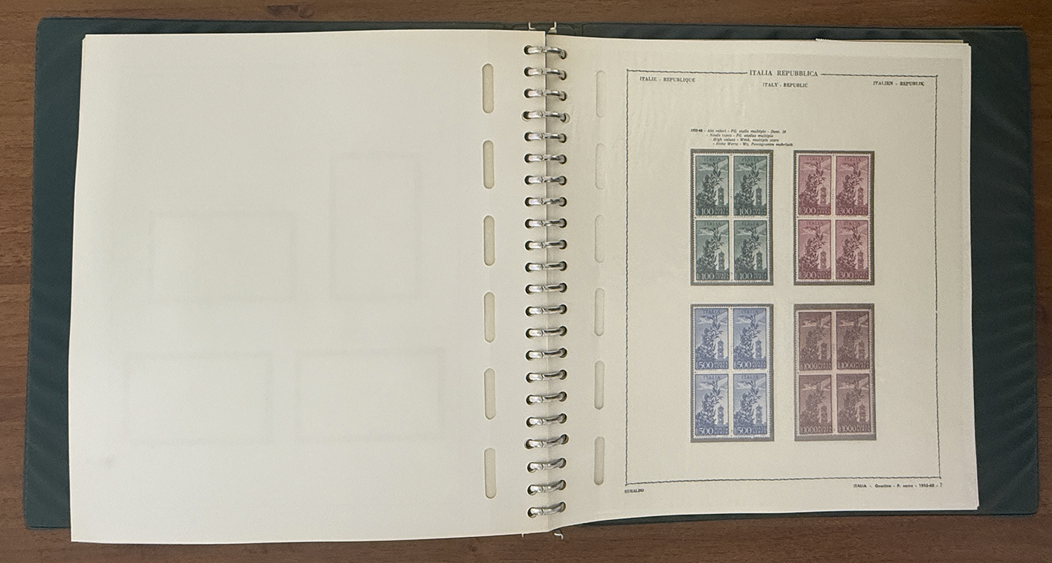 REPUBBLICA ITALIANA 1953/2000 - Ordinata accumulazione di francobolli e quartine del periodo, nuovi e usati, in uno scatolone. Presente anche un piccolo insieme relativo al Regno d'Italia 1863/1930. Mancano presenze significative, ma buon valore facciale.