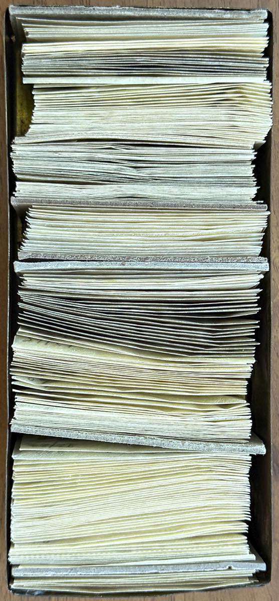 AREA ITALIANA 1945/1960 - Piccolo stock commerciale di francobolli nuovi del periodo in bustine di pergamino in una piccola scatola.