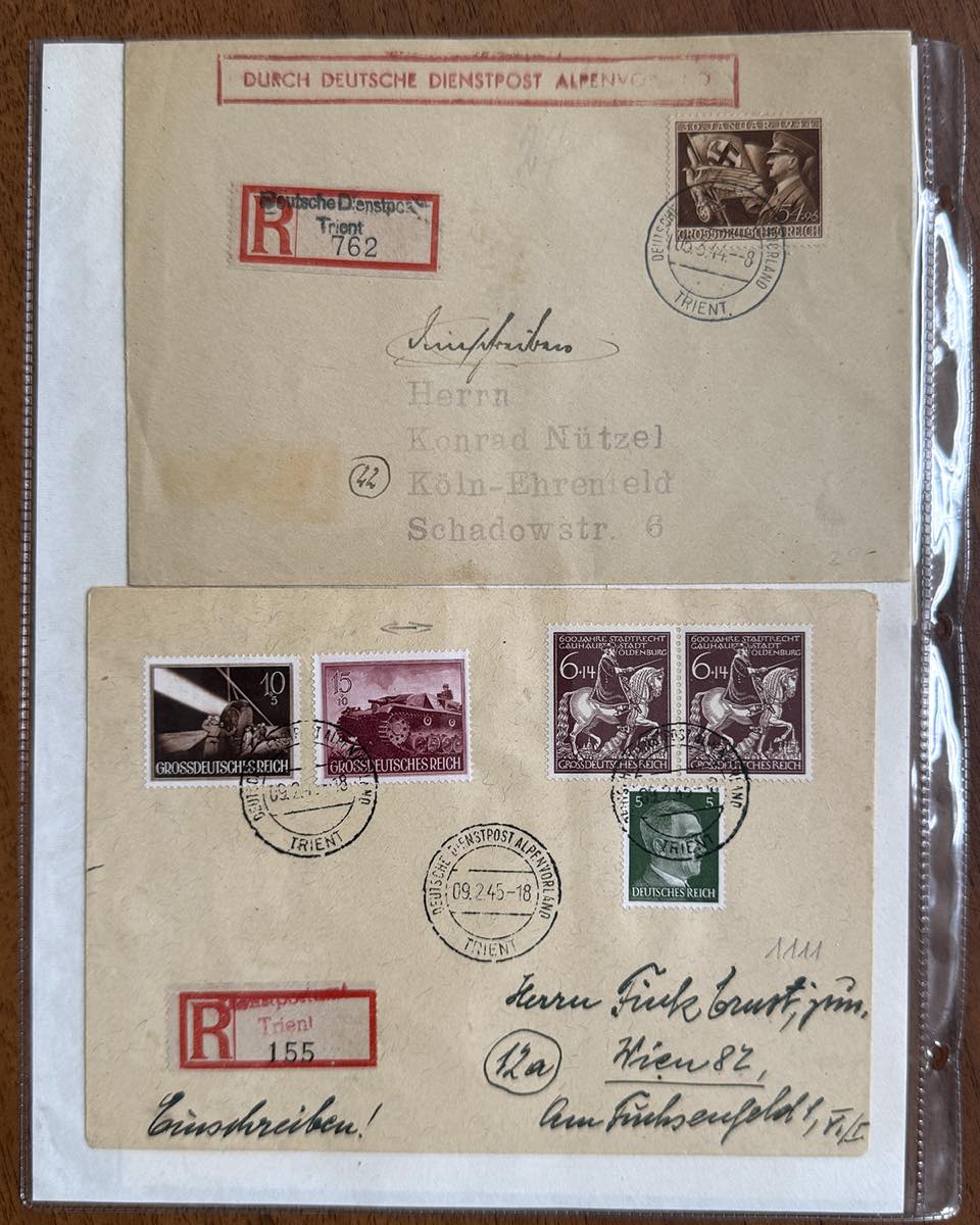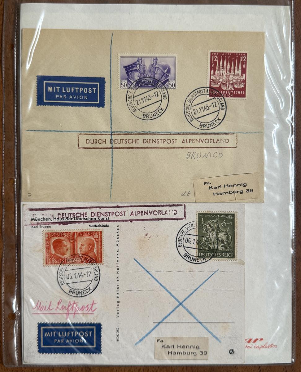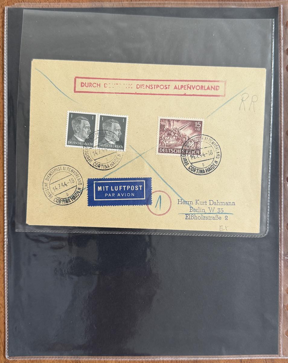 GERMANIA REICH ALPENVORLAND 1943/1944 - Bell'insieme di 42 lettere di Deutsche Dienspot Alpenvorland con varietà di affrancature e annullamenti, anche non comuni e di pregio. Merita esame.