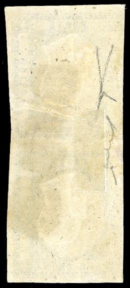 1861 - 2 grana azzurro, EFFIGIE CAPOVOLTA (20f), coppia verticale, margine sinistro intaccato, usato con il lineare annullato in rosso. ... Leggi tutto