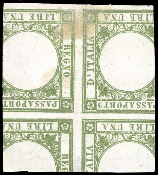 PROVE 1861 - 1/2 tornese, prova di macchina in nero, su carta sottile con al verso la prova in verde di marche per passaporti, senza gomma ... Leggi tutto