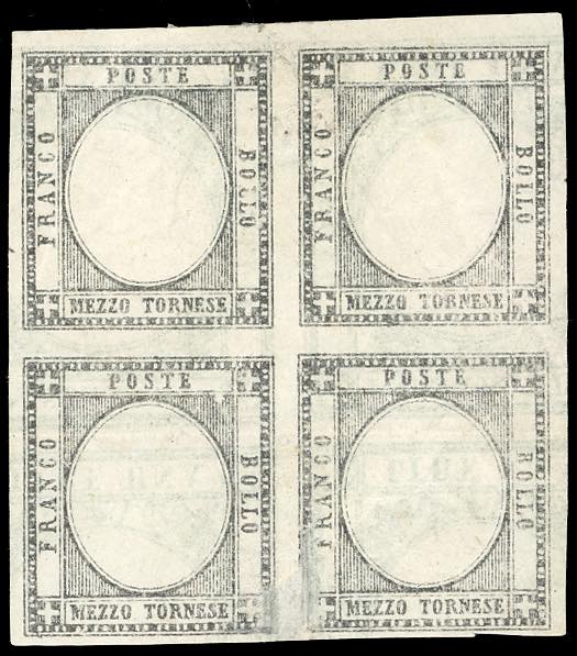 PROVE 1861 - 1/2 tornese, prova di macchina in nero, su carta sottile con al verso la prova in verde di marche per passaporti, senza gomma come sempre, buono stato. Interessante.