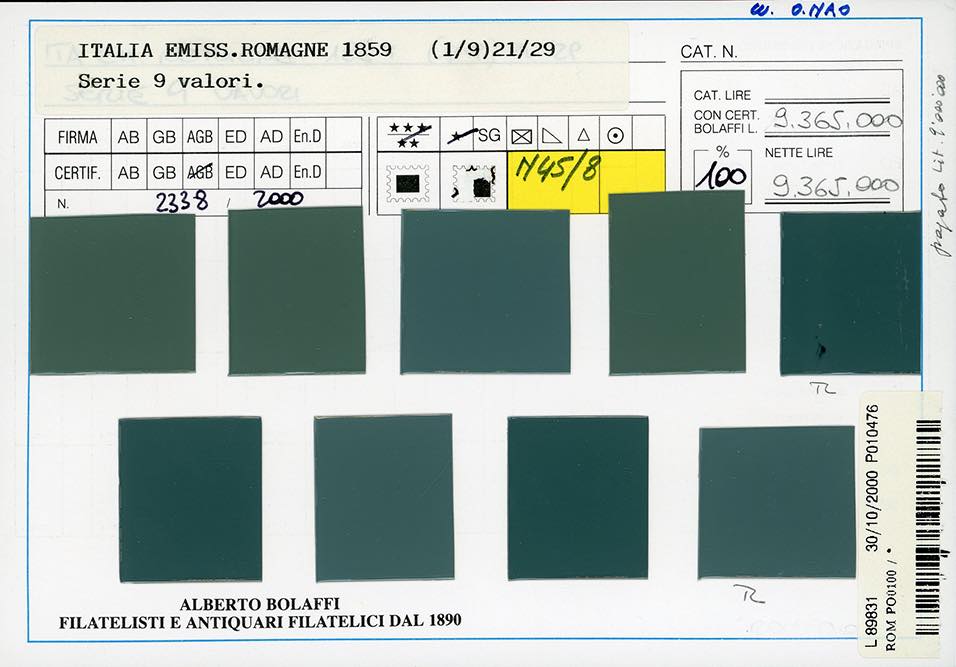 Lotto 321 - 1859 - Serie completa (1/9), diversi esemplari bordo di ...