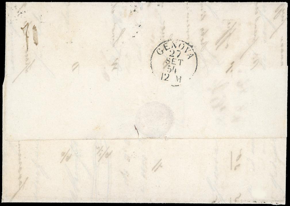 1854 - 40 cent. rosa chiaro (6), bordo di foglio in alto, leggermente intaccato in basso, su lettera da Torino 20/9/1854 a Genova. ... Leggi tutto
