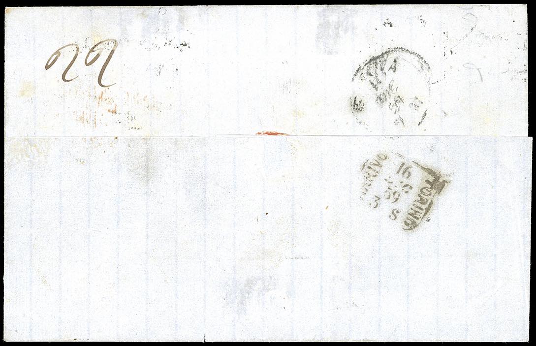 1859 - 20 grana grigio ardesia, 2 grana azzurro chiaro, I tavola, posizione 78 con ritocco (13,6g), perfetti, su lettera da Messina ... Leggi tutto