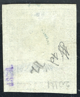 1851 - 6 crazie azzurro su grigio (7d), riga completa di riquadro orizzontale nel margine di foglio in alto, usato, ampi margini su tutti i lati, leggermente assottigliato al verso. Aspetto eccezionale. Ferrario.