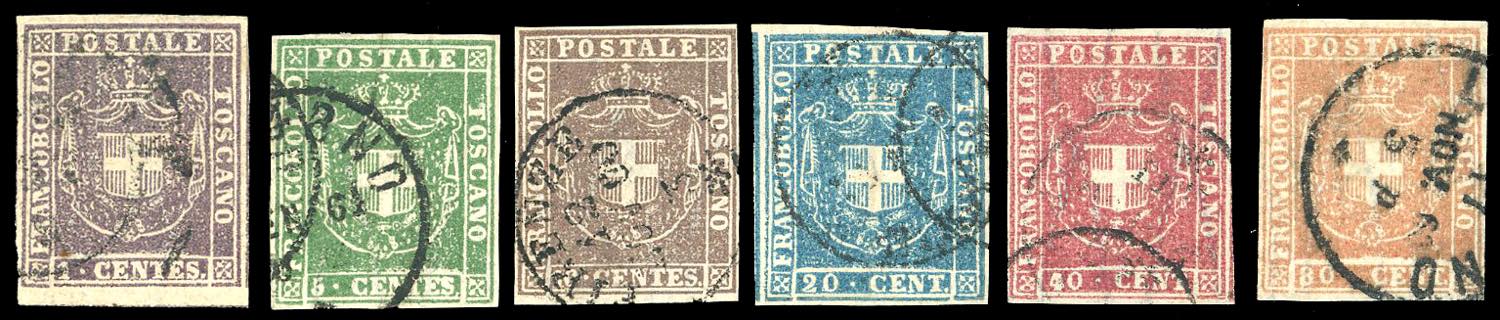 1860 - L'emissione completa senza il 3 lire (17/22), usati, perfetti. Tutti molto freschi e ben marginati. Il primo e l'ultimo cert. ... Leggi tutto