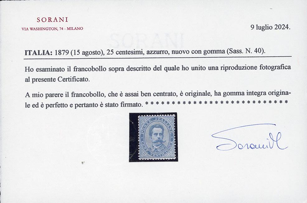 Lotto 607 - 1879 - 25 cent. Umberto I (40), ben centrato, nuovo, gomma ...