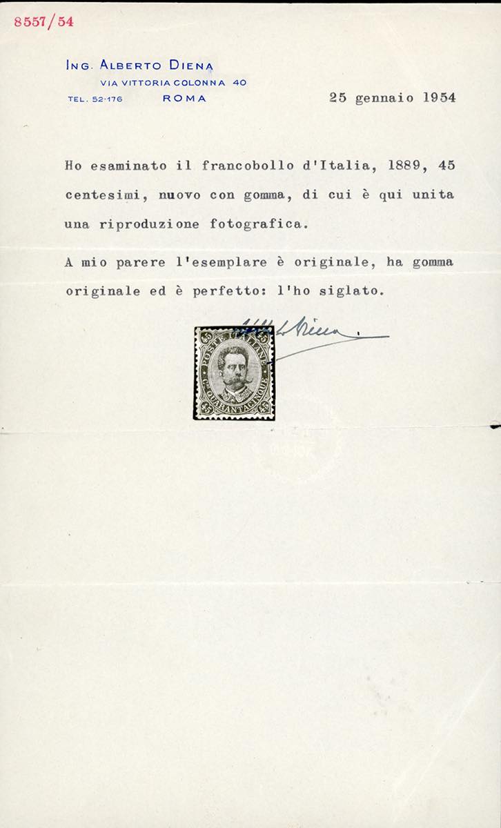 Lotto 610 - 1889 - 45 cent. Umberto I (46), ottima centratura, gomma ...