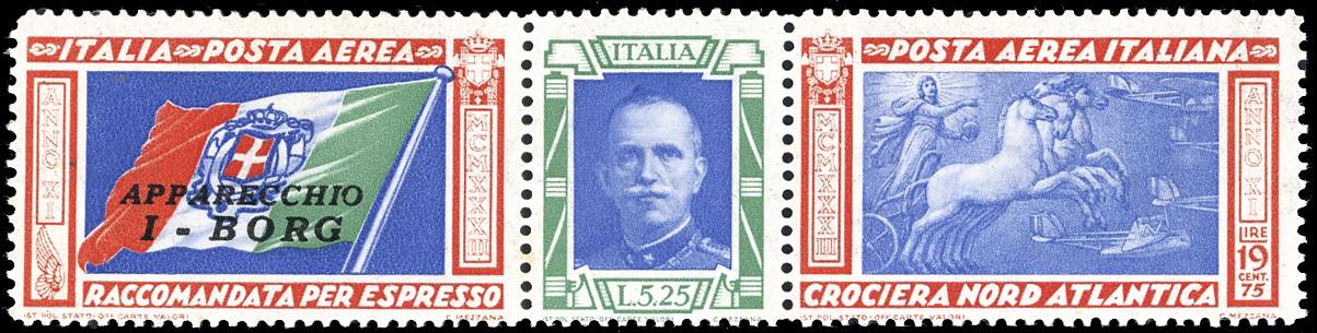 Lotto 689 - 1933 - 5,25 + 19,75 lire Trittico I-BORG, varietà "ciuffo" ...