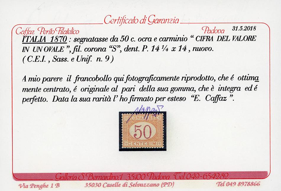 Lotto 713 - 1870 - 50 cent. ocra e carminio (9), ottima centratura, ...