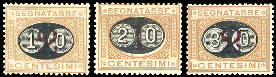 1890/1891 - Mascherine, soprastampati, serie completa (17/19), nuovi, gomma originale, leggera traccia di linguella, perfetti. Il 30 cent. ... Leggi tutto