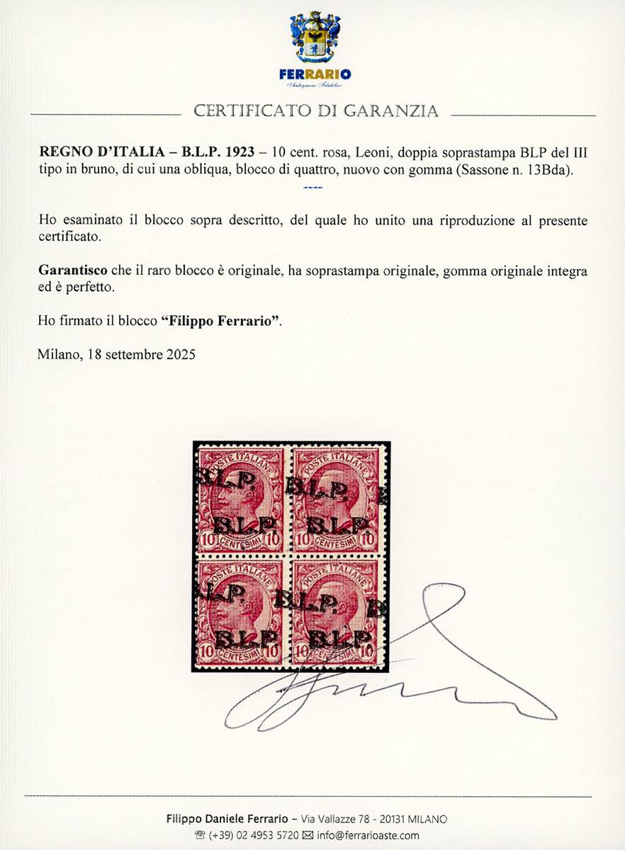 Lotto 737 - 1923 - 10 cent. doppia soprastampa BLP del III tipo in ...