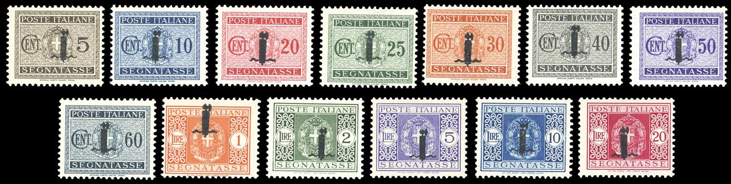 SEGNATASSE 1944 - Soprastampati fascetto, serie completa (60/72), nuovi, gomma originale integra, perfetti. Alti valori cert. Caffaz.