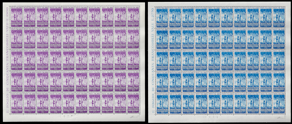 1950 - Radiodiffusione, serie compelta (623/624), fogli di 50 esemplari, nuovi, gomma originale integra, perfetti e molto freschi. Rari e di ottima qualità. Ferrario.
