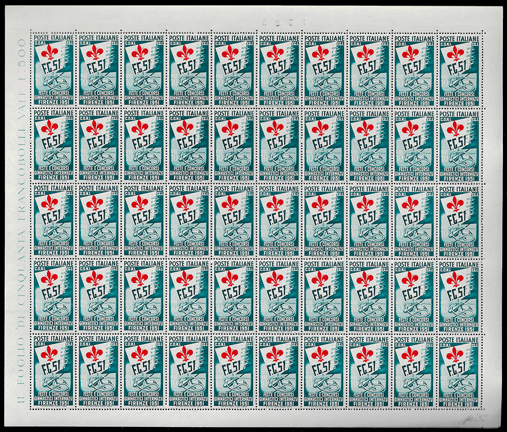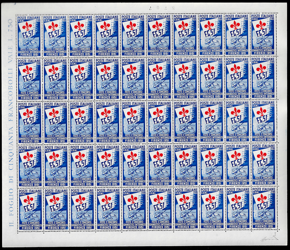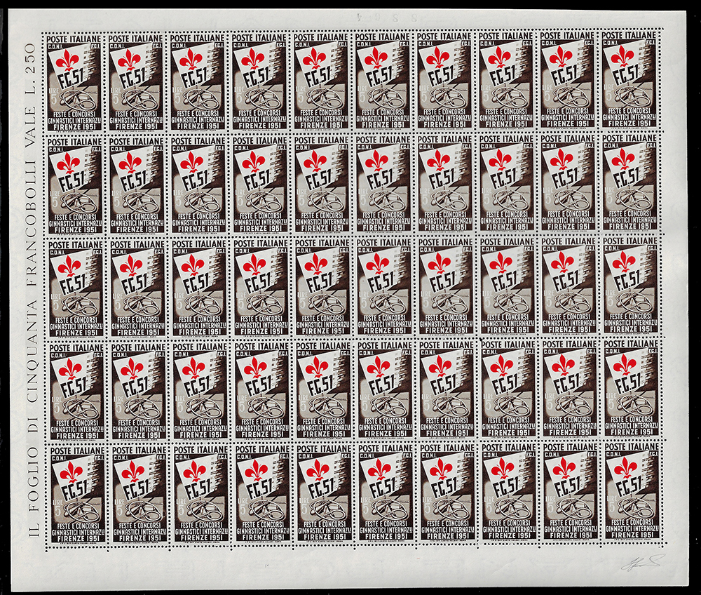 1951 - Ginnici, serie completa (661/663), fogli di 50 esemplari, nuovi, gomma originale integra, perfetti. Ottima qualità. Ferrario.