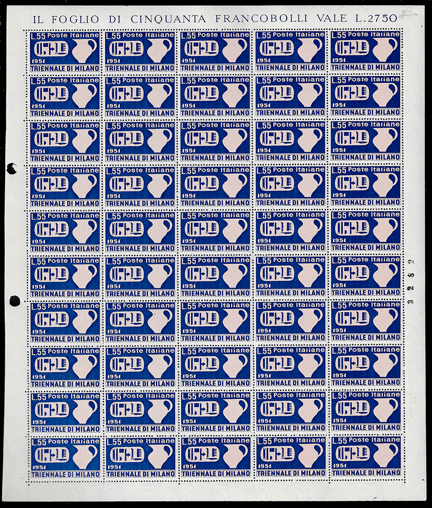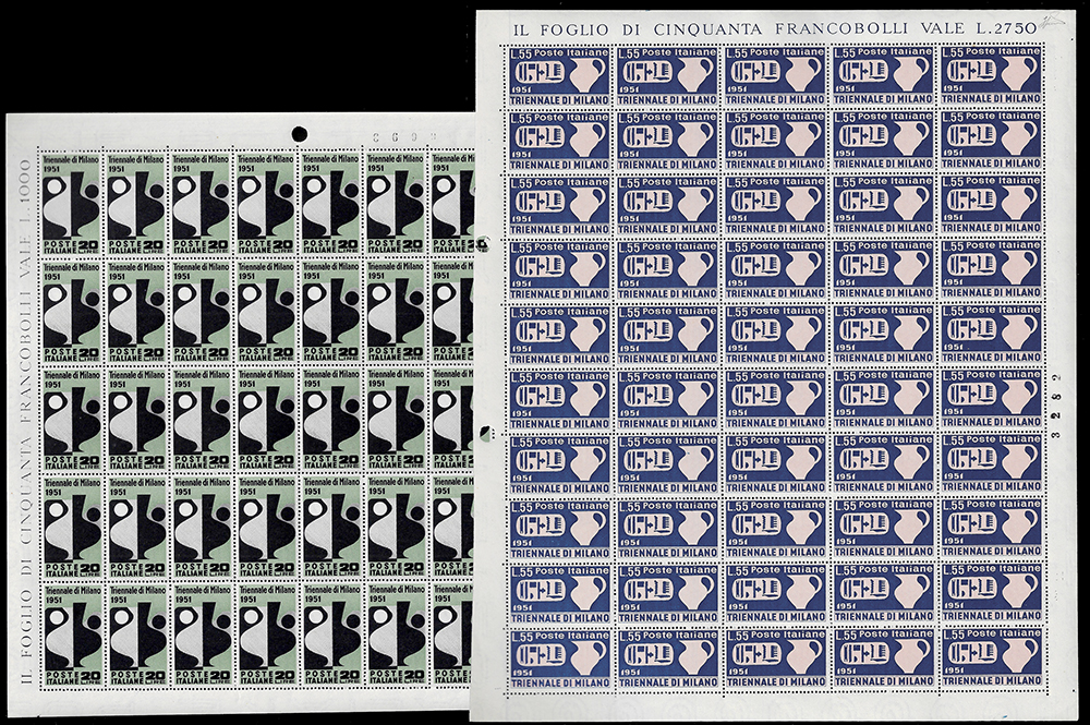 1951 - Triennale, serie completa (666/667), fogli di 50 esemplari, nuovi, gomma originale integra, perfetti. Ferrario.