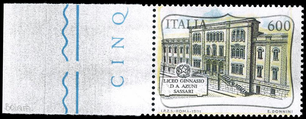 Lotto 864 - 1991 - 600 lire "Liceo grigio", francobollo naturale ...