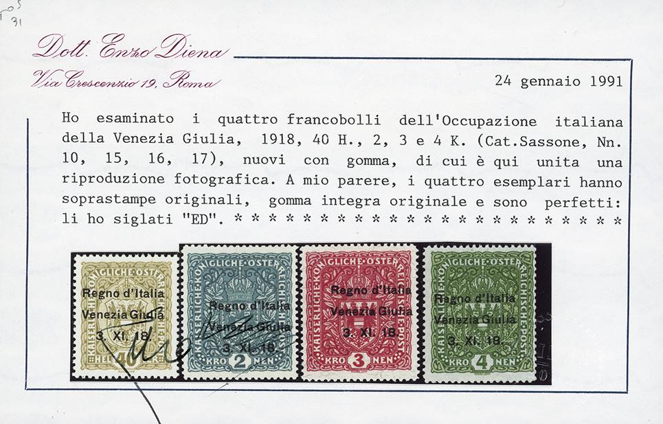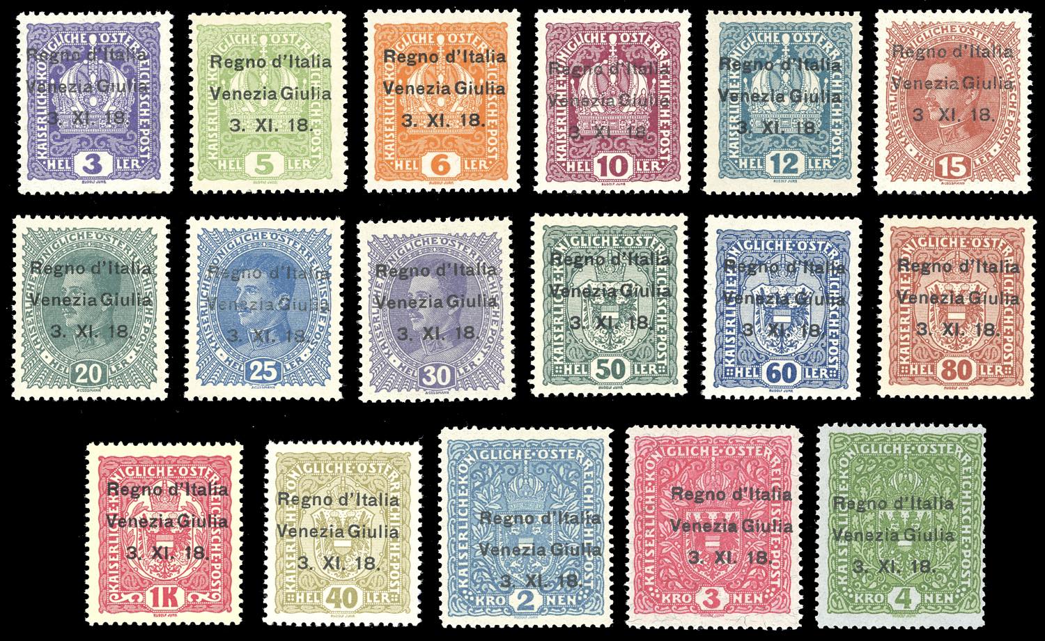 Lotto 909 - VENEZIA GIULIA 1918 - Soprastampati, serie completa (1/17), ...