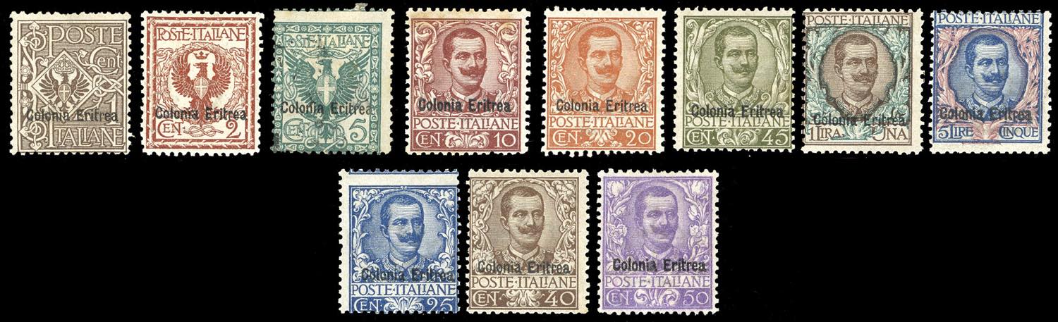 1903 - Floreale soprastampati, serie completa (19/29), nuovi, gomma originale, perfetti. Il n. 21 è usato.