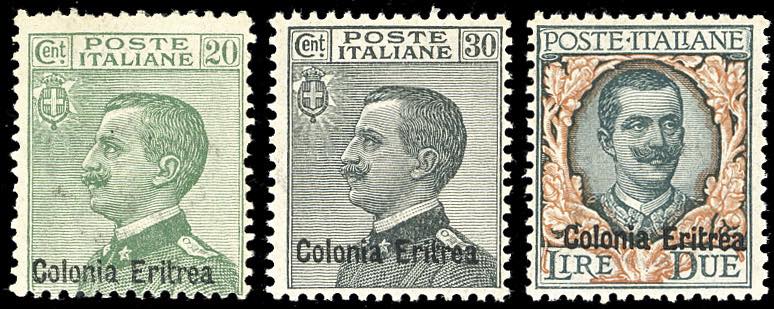 1925 - Soprastampati, serie completa (93/95), nuovi, gomma originale integra, perfetti. Ferrario.