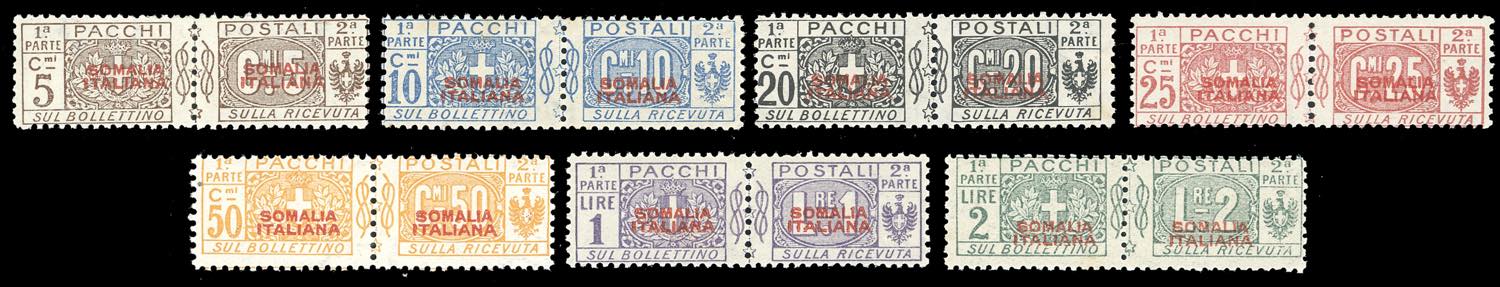 PACCHI POSTALI 1926/1931 - Non emessi, soprastampati, serie completa (43/49), nuovi, gomma originale integra, perfetti. Ottima qualità. ... Leggi tutto