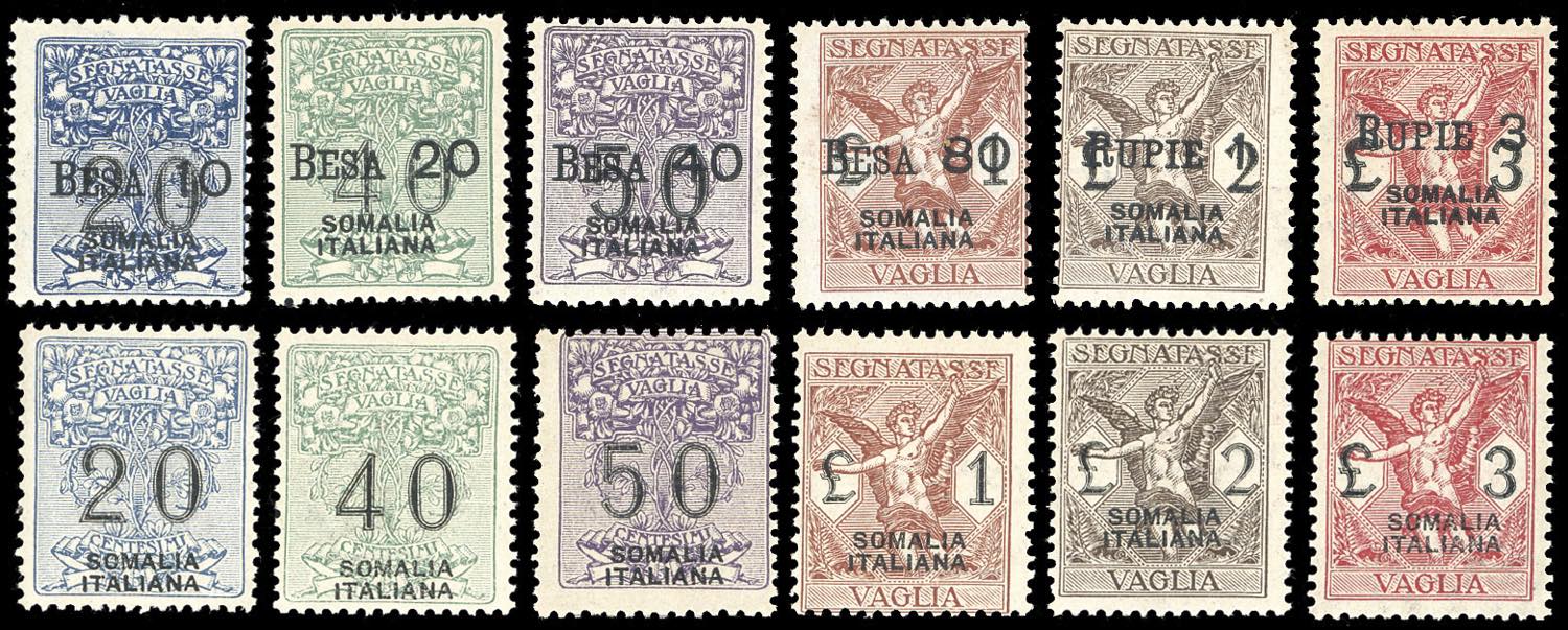 SEGNATASSE PER VAGLIA 1924/1926 - Le due serie complete soprastampate (1/6,7/12), nuovi, gomma originale integra, perfetto. Tutti firmati Ferrario.