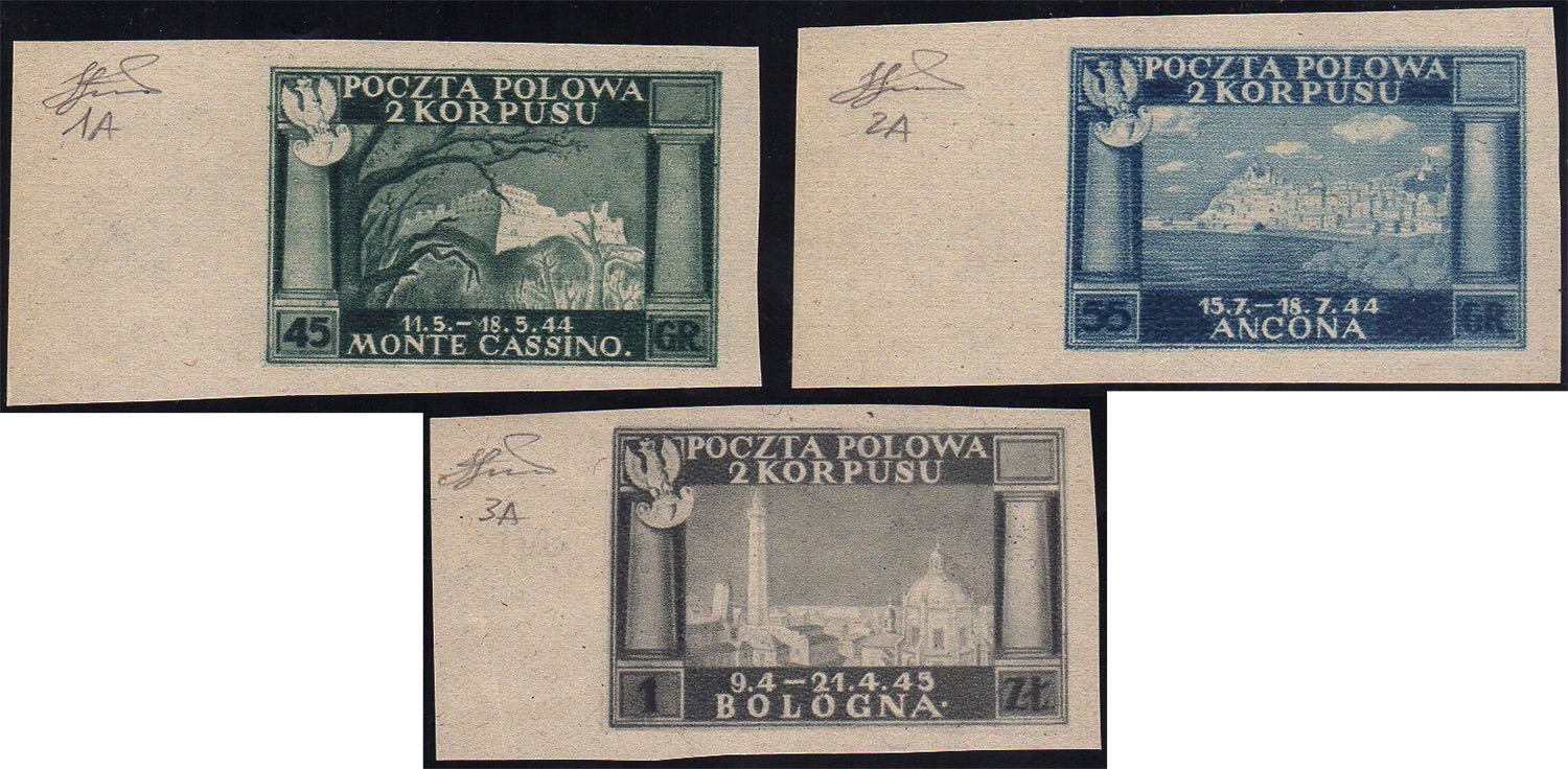 1946 - Vittorie polacche, carta grigiastra, non dentellati (1A/3A), bordo di foglio, gomma integra, perfetti. Belli! Ferrario.
