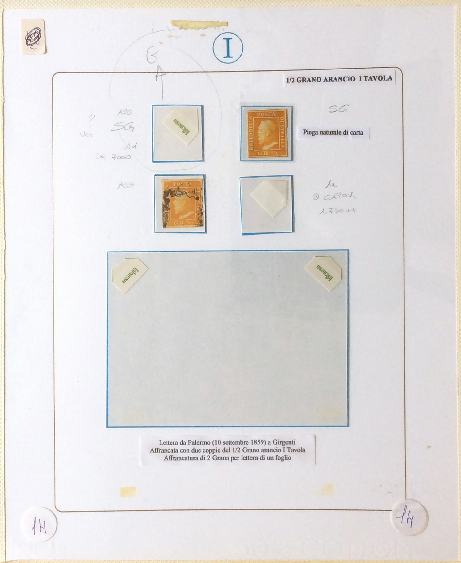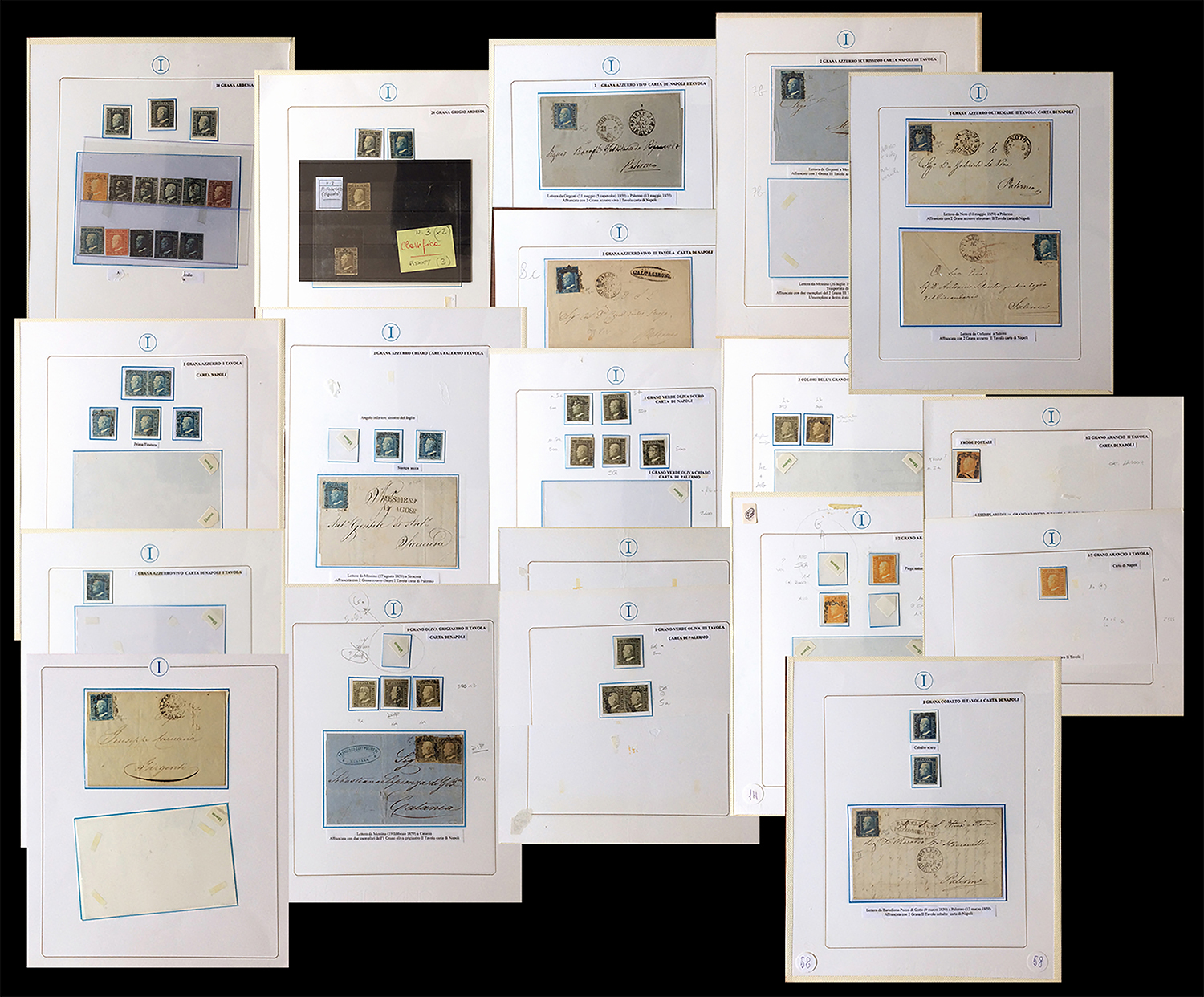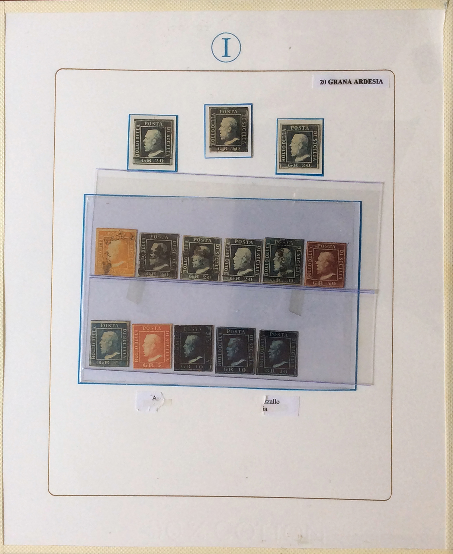 SICILIA 1859/1860 - Interessante resto di collezione del Prof.Imperato, composto da 46 francobolli nuovi o usati e 10 lettere, generalmente montati ancora su fogli da esposizione. Qualità mista, ma di sicuro interesse. Alto valore di catalogo.