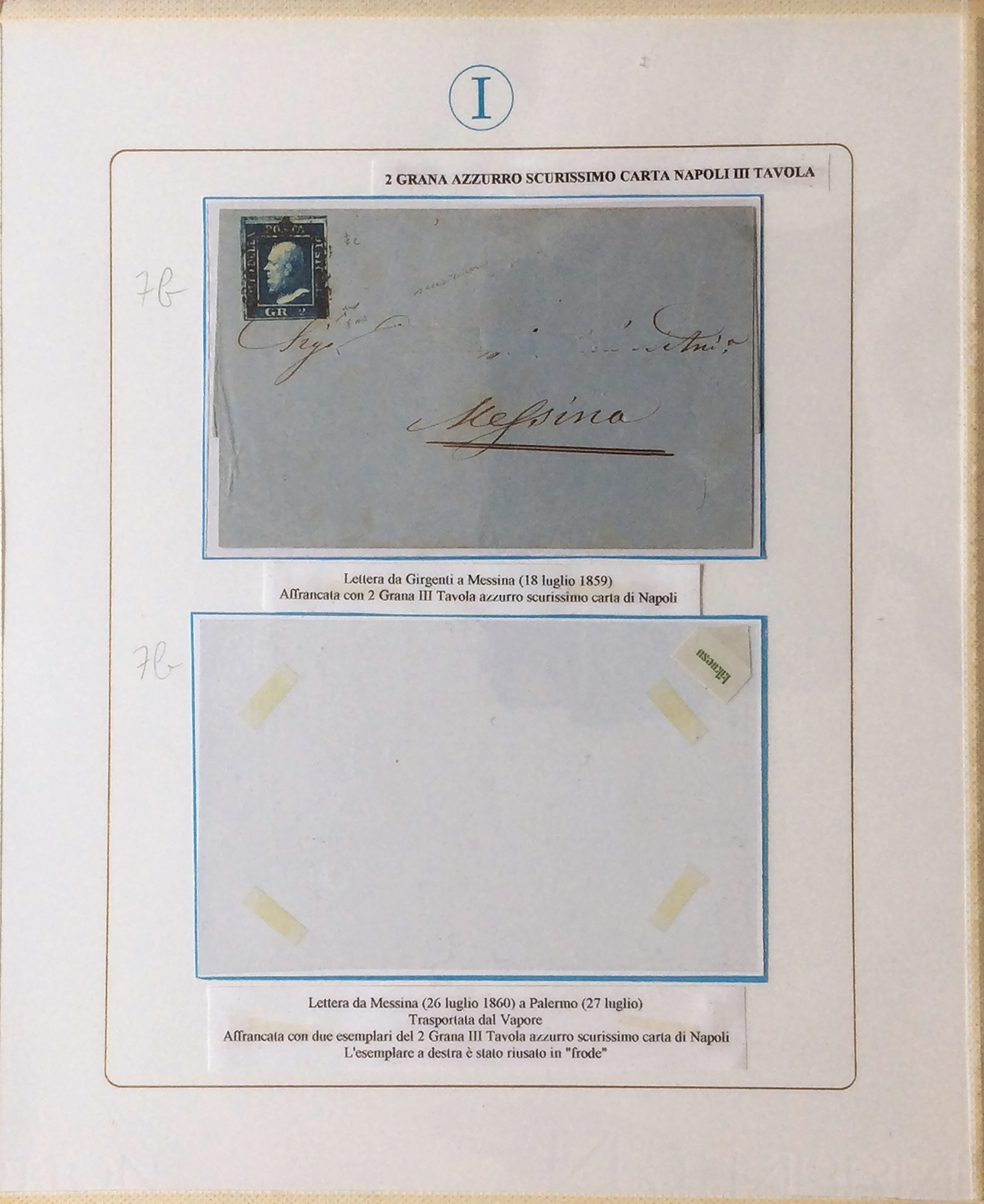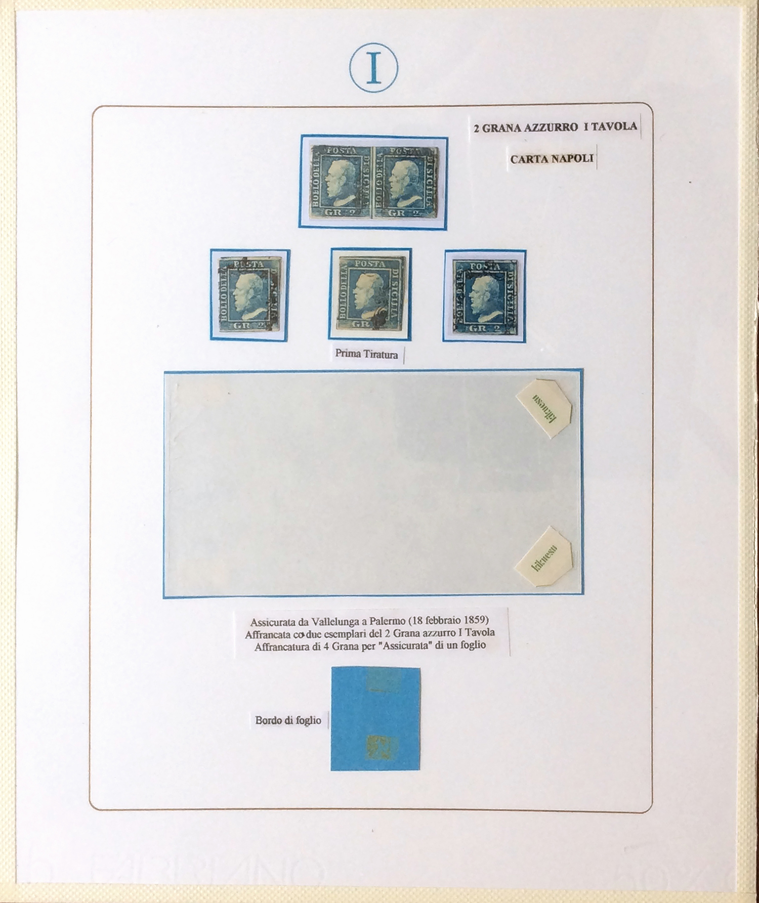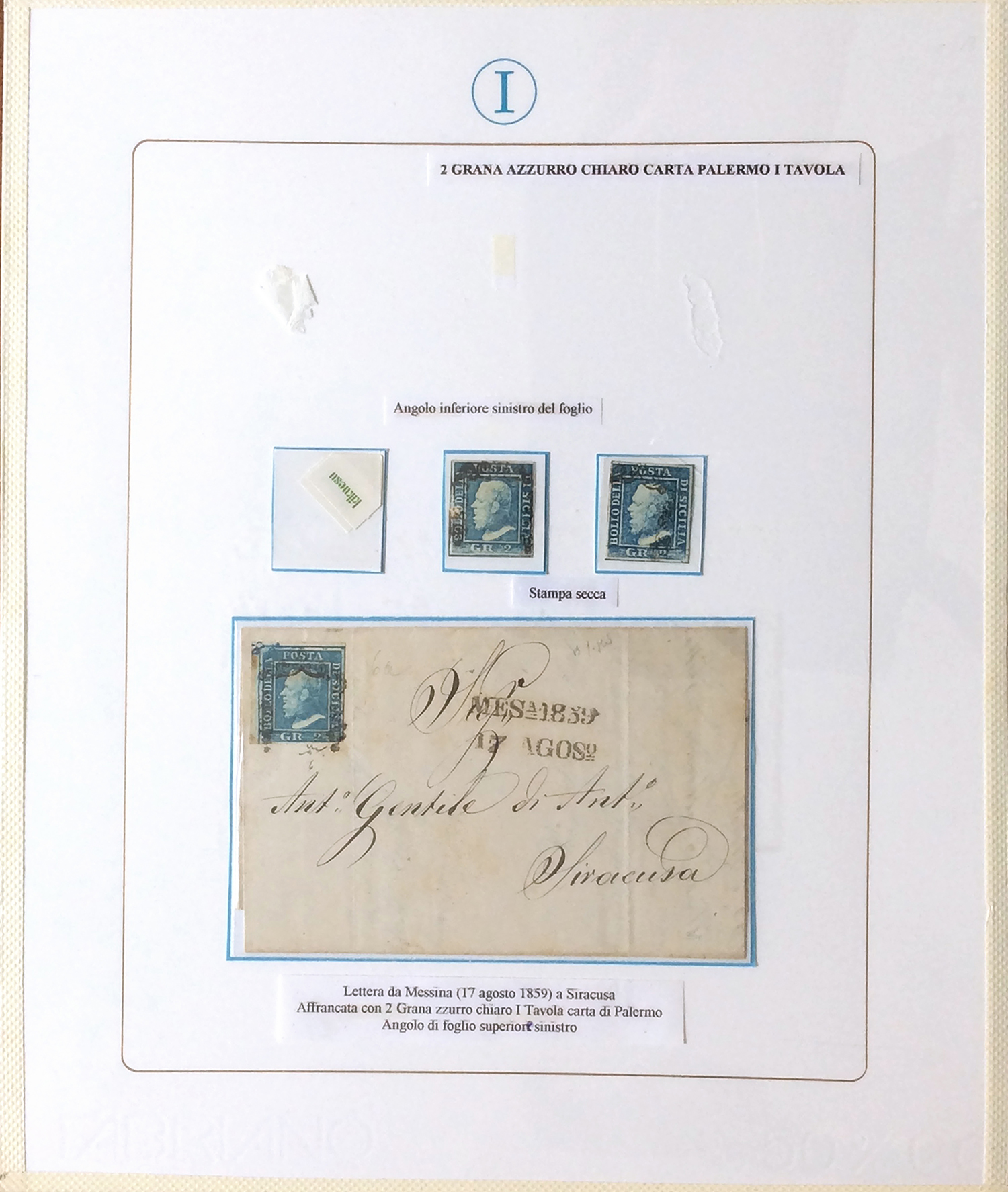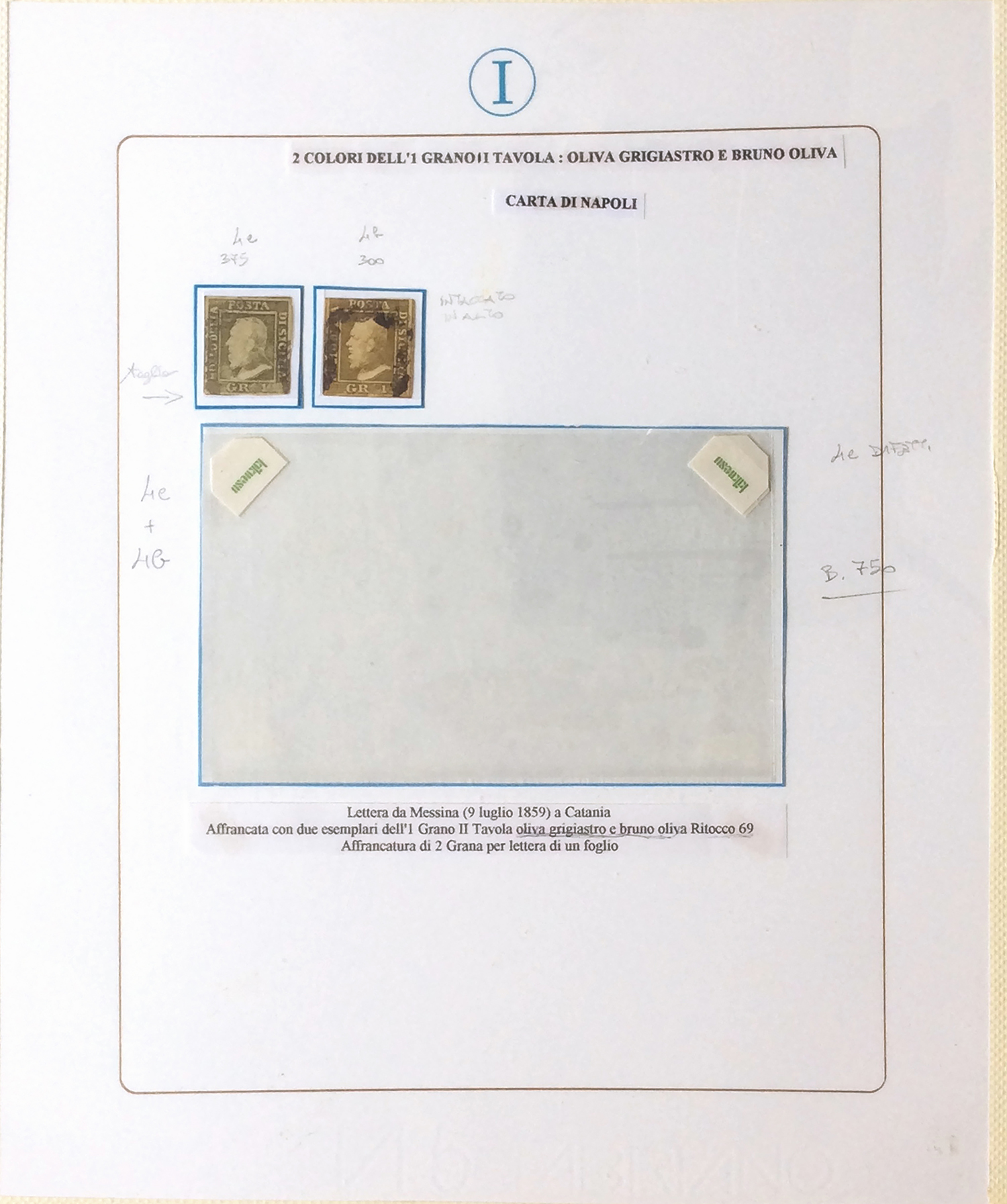 SICILIA 1859/1860 - Interessante resto di collezione del Prof.Imperato, composto da 46 francobolli nuovi o usati e 10 lettere, generalmente montati ancora su fogli da esposizione. Qualità mista, ma di sicuro interesse. Alto valore di catalogo.
