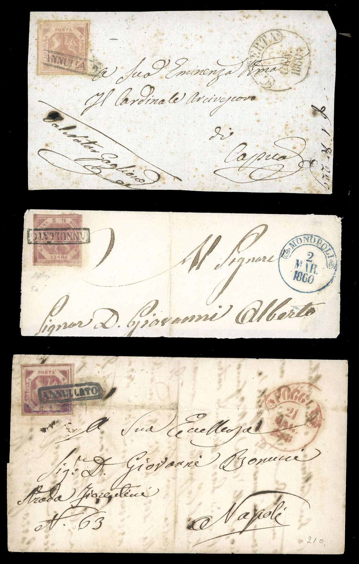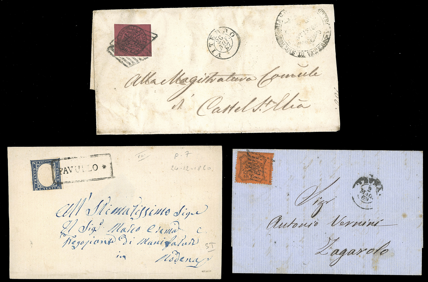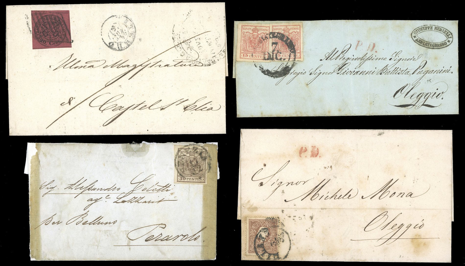 ANTICHI STATI ITALIANI 1850/1870 - Piccolo insieme di francobolli e lettere del periodo. Buon valore di catalogo. Ottimo per dettaglio.
