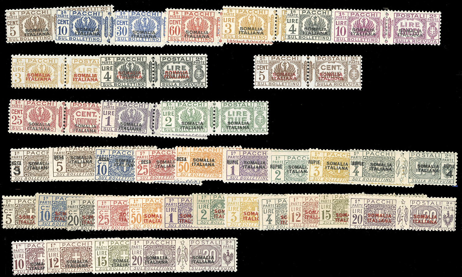 SOMALIA PACCHI POSTALI 1923/1937 - Bell'insieme di serie del periodo, qualche valore mancante, nuovi, gomma originale integra, alcuni con leggera traccia di linguella. Ottima qualità generale, alto valore di catalogo, occasione.