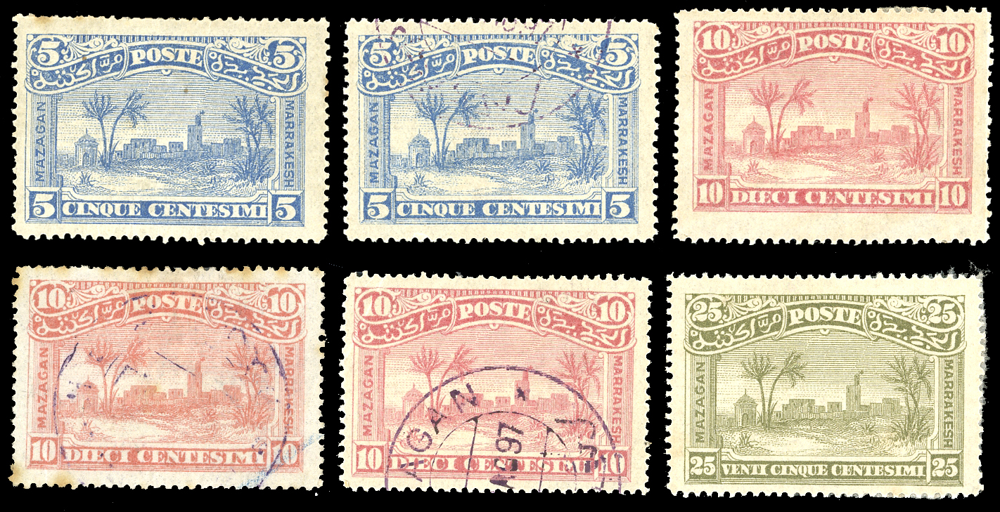 MAROCCO-MAZAGAN A MARRAKECH 1897 - Lotto di sei esemplari nuovi o usati (Yv.53,54,55).