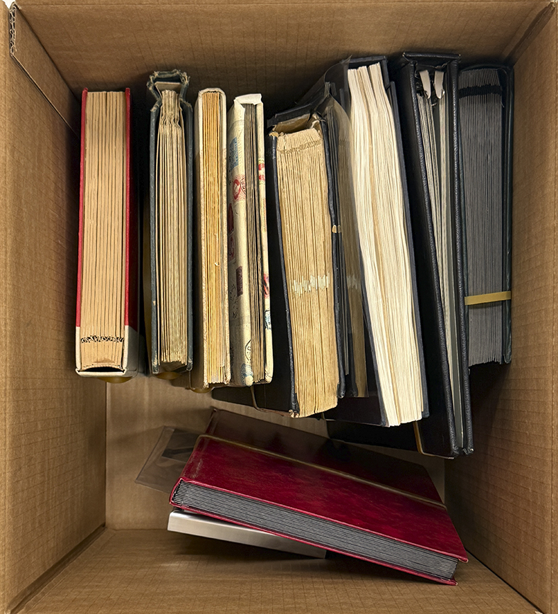 MONDIALI 1870/1984 - Sette classificatori e due album con inizi di collezioni di francobolli nuovi o usati del periodo di Paesi vari. Unito biglietto autografo dell'attore Petrolini in piccola cornice. Divertente.