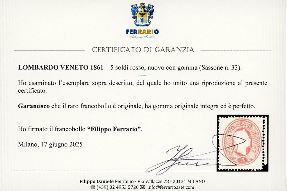 Lotto 43 - 1861 - 5 soldi rosso (33), nuovo, gomma originale integra, ...