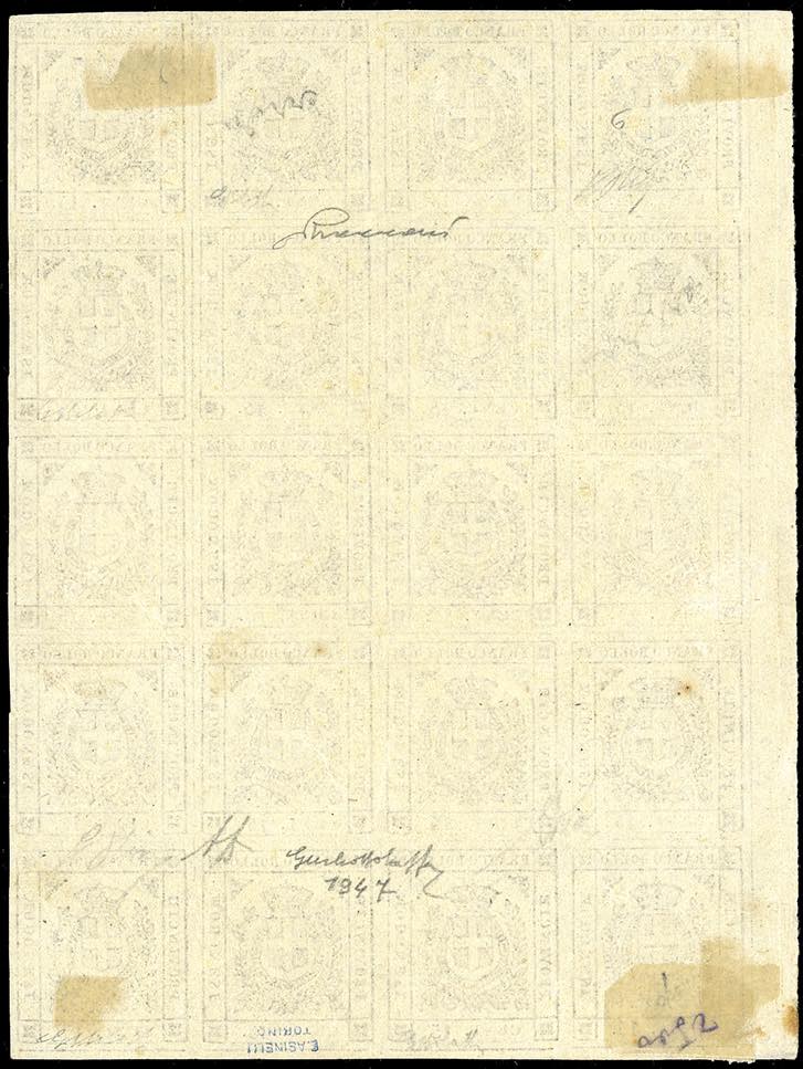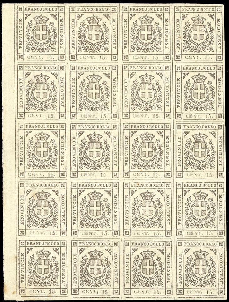 Lotto 130 - 1859 - 15 cent. bruno (13), blocco di 20 esemplari, bordo ...