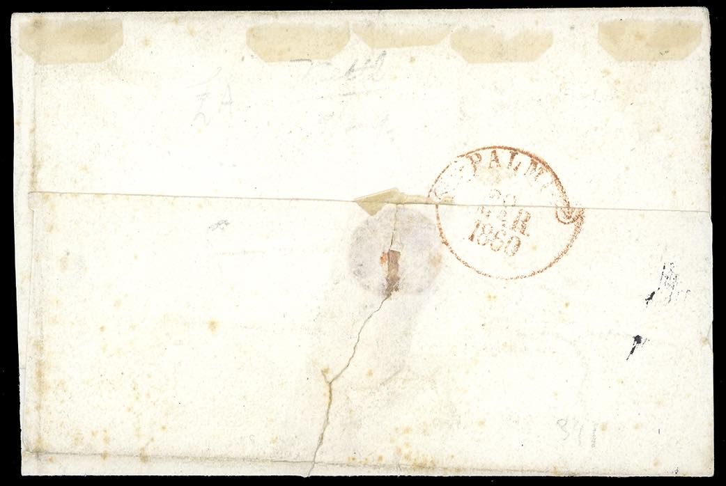 1860 - 1/2 grano rosa chiaro, I tavola (1), striscia di quattro, perfetta, su lettera da Gerace a Reggio, bollo di arrivo del 29/3/1860. ... Leggi tutto
