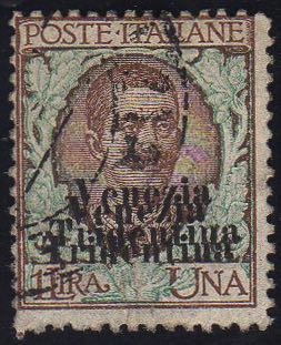 TRENTINO ALTO ADIGE 1918 - 1 lira doppia soprastampa "Venezia Tridentina" (27b), usato, perfetto.