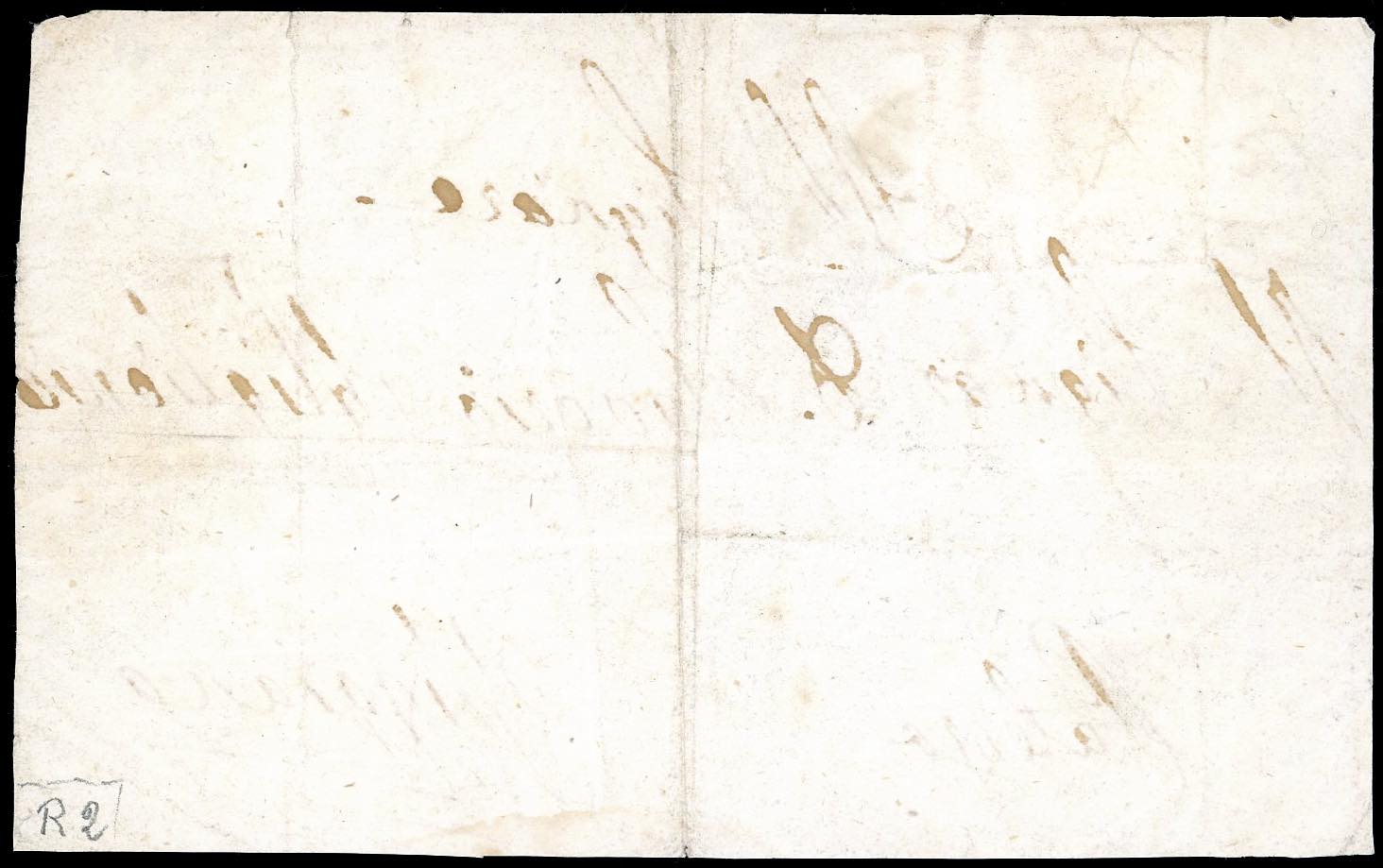 CASERTA, cerchio punti R2 - 2 grana (7), perfetto, su frontespizio di lettera per Viggiano. Estremamente raro. A.Diena, cert. Raybaudi (cat. € 27.500 come lettera completa, € 13.750 per il frontespizio).