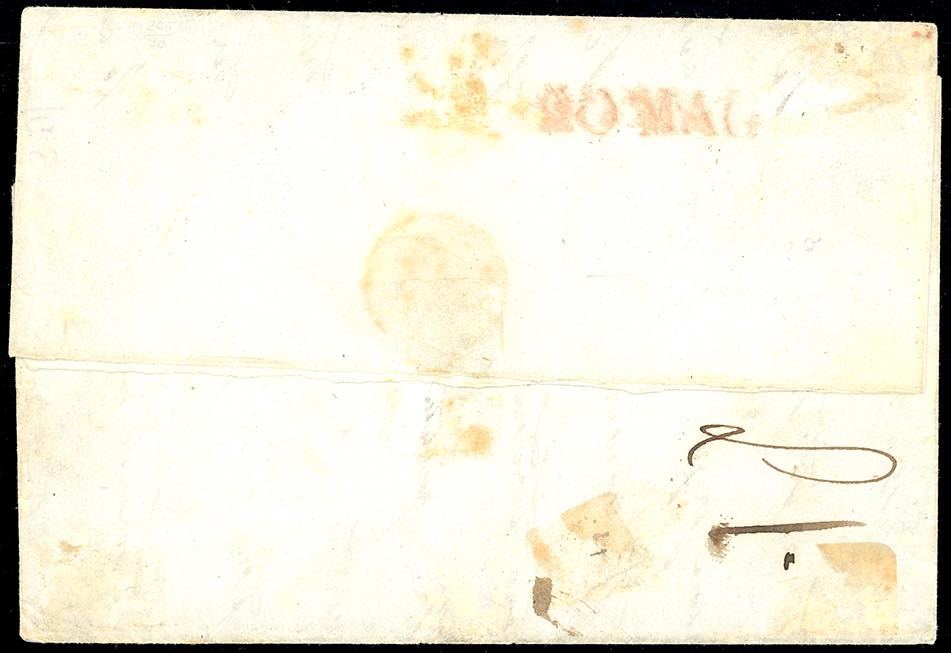 1853 - 5 cent. giallo e 25 cent. violetto, margini di foglio inferiore con evidente Randruck (1,4), perfetti su fresca lettera da Parma 18 maggio a Genova, giunta il 20/5, tassata per mancanza di convenzione, probabilmente del 1853. Chiavarello, Ferrario. Ex coll. Imperato.