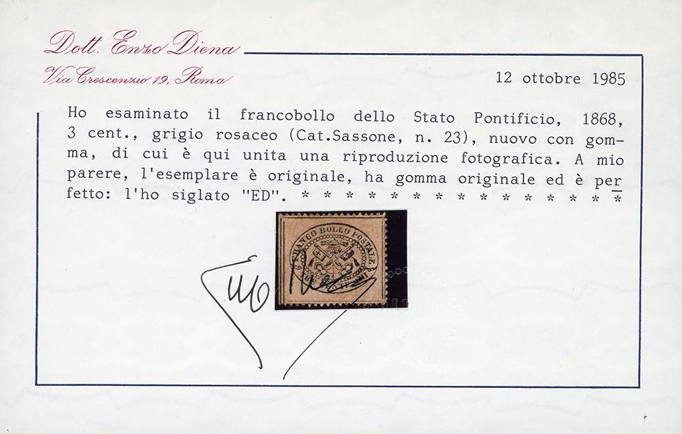 1868 - 3 cent. grigio rosa (23), margine di foglio a sinistra, otto filetti di separazione visibili sui quattro lati, nuovo, gomma ... Leggi tutto