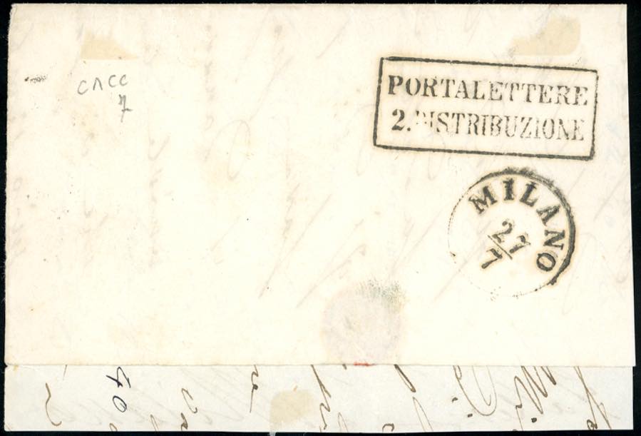 1855 - 8 baj bianco, falso per posta del I tipo (F4), perfetto e ben marginato, su gran parte di lettera, incompleta al verso ma con bollo ... Leggi tutto