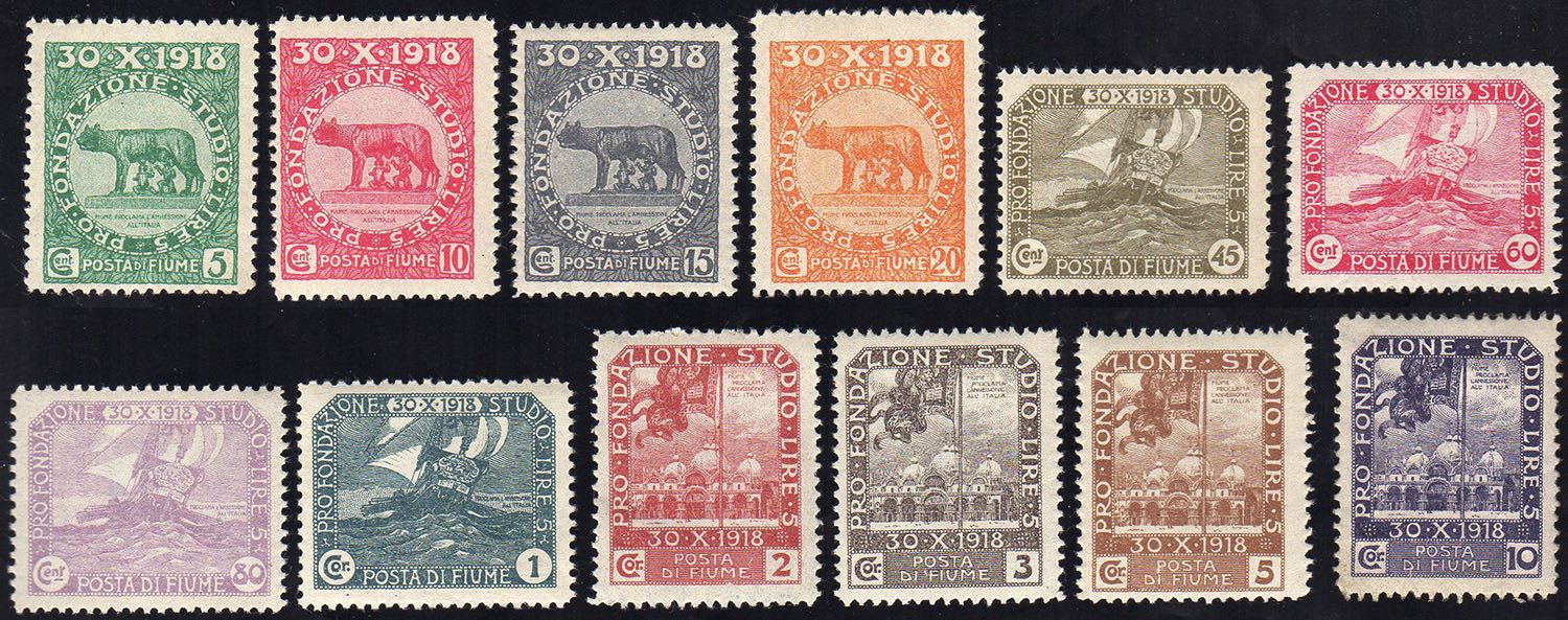FIUME 1919 - Plebiscito, serie completa (62/73), nuovi, gomma originale integra, perfetti. Ottima qualità.